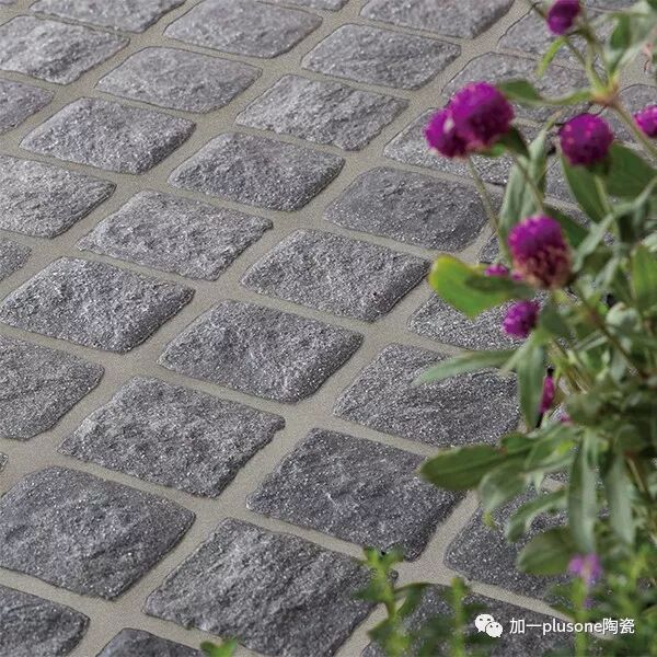 PRGD 一層的車道處使用了加一陶瓷具有石材風格的PRGD系列無釉磚。厚度達18mm,單磚尺寸92×92mm。承重性極佳,汽車長期行駛碾壓,也不會斷裂損壞。在鋪貼設(shè)計上,采用了PRGD的14號色做成線條進行點綴,形成有流動韻律的空間。17號與14號是非常相稱的色彩搭配,效果格外的自然。 PRGD系列彩色鋪石磚韻承古羅馬星羅棋布的石路,形態(tài)各異,可自由組合的渾圓石塊恍如歷經(jīng)歲 月洗禮低聲訴說著歷史。其承重性極佳,適合在行人密集處使用。