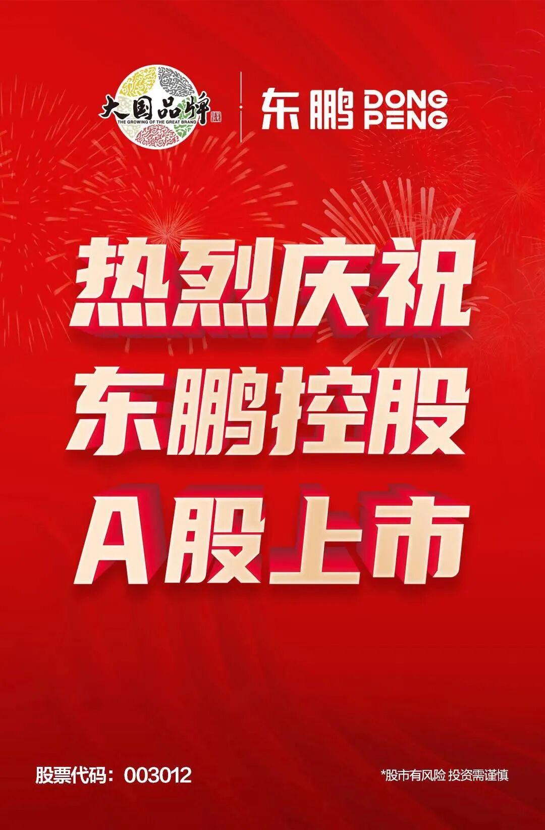 熱烈祝賀東鵬控股登陸A股!